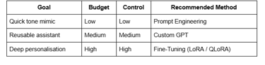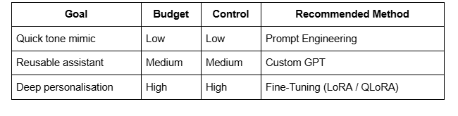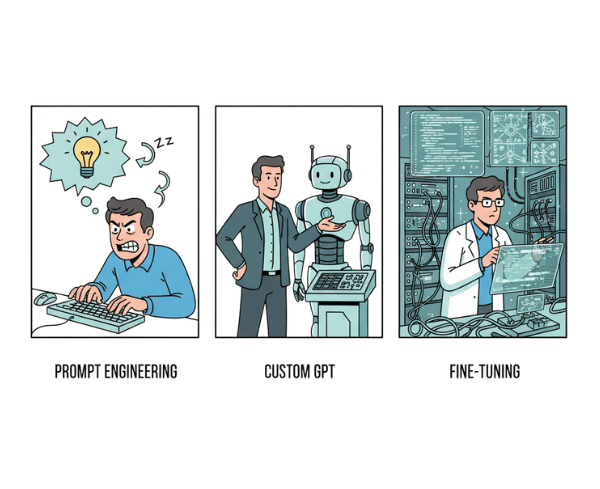 Choose the right method – Prompt Engineering, Custom GPT, or Fine-Tuning – based on your goals and resources.