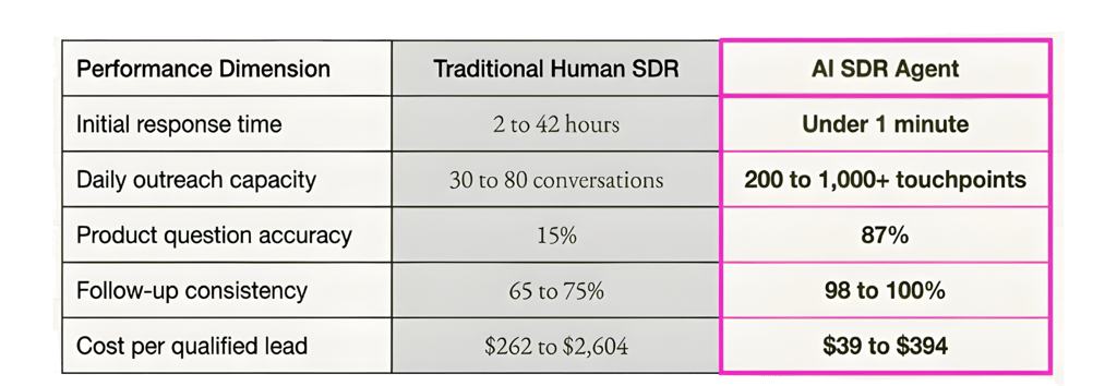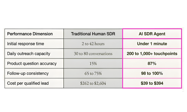 The average human response time to a website inquiry ranges from 2 to 42 hours. By that point, the buyer has already evaluated three competitors and moved on. Research shows that responding to a lead within the first minute increases conversion rates by up to 391%. Most B2B teams are nowhere close to that standard.