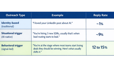 How the AI engine solves it: Signal-based outreach leads with a point of view on a problem the buyer is likely facing right now, grounded in what is happening in their world rather than what they browsed on your website.