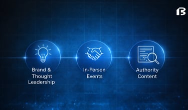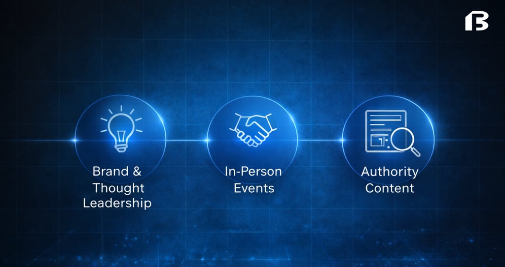 Brand makes demand generation more efficient. Authority content makes outbound warmer. Events create trust that shortens sales cycles. Owned media reduces reliance on paid channels. Revenue ops makes every dollar accountable.