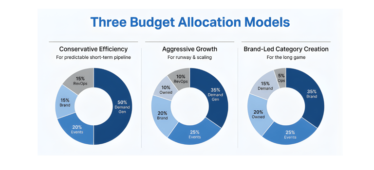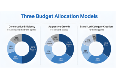 A starting point: 60% demand, 30% brand, 10% revenue ops. As your ICP sharpens and brand starts compounding, gradually shift toward 50/40/10. The exact split matters less than having an intentional allocation you actually measure against.
