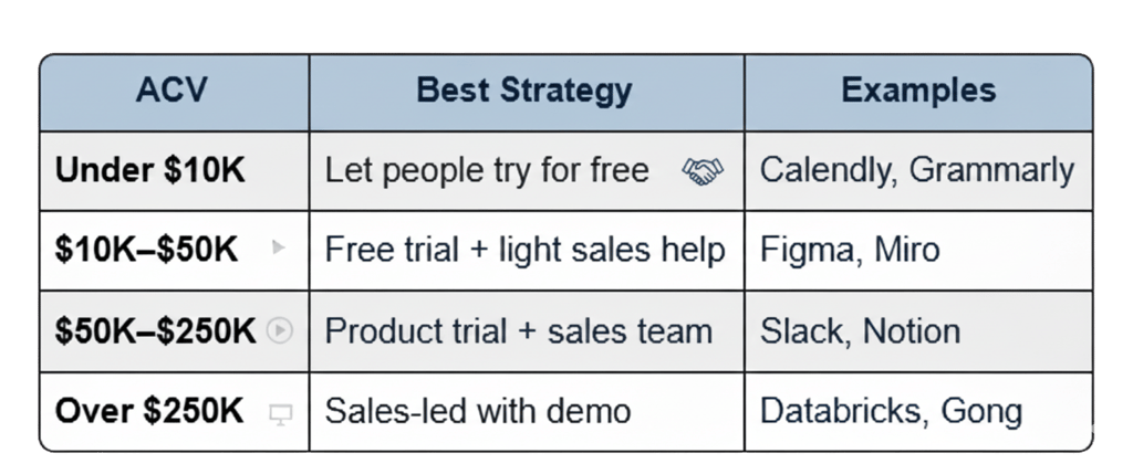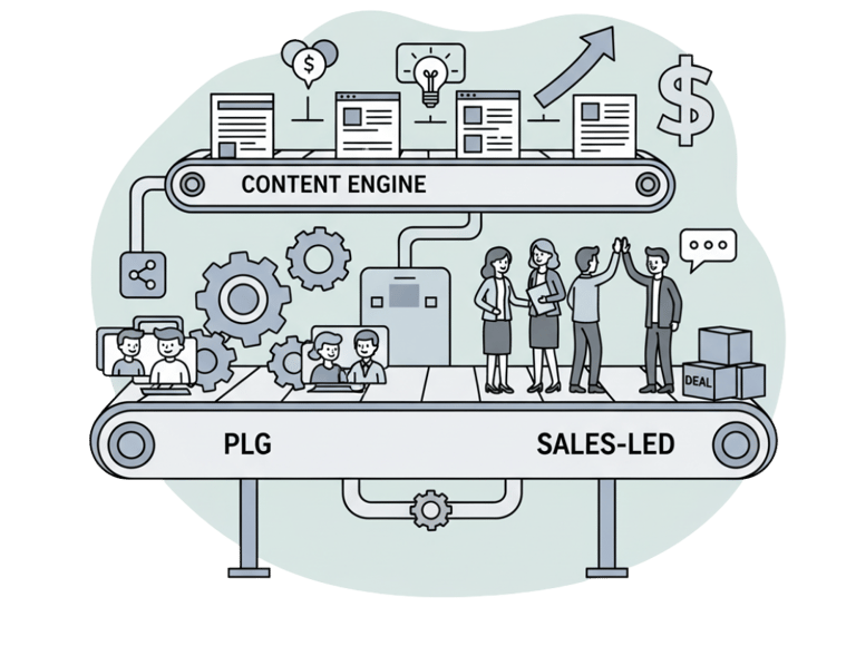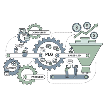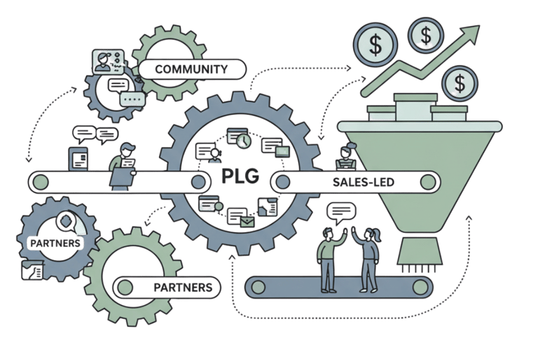3. Hybrid (Product-Led + Sales-Assisted): Product gets users started, sales helps them scale. Examples: Slack, Dropbox.