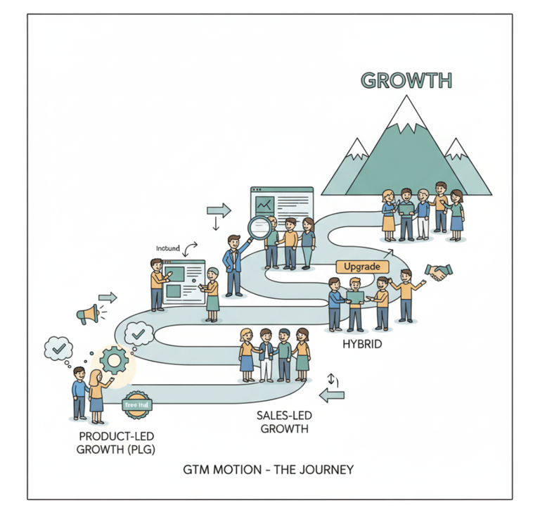 A GTM motion is how customers find you, try your product, buy it, and spend more over time.