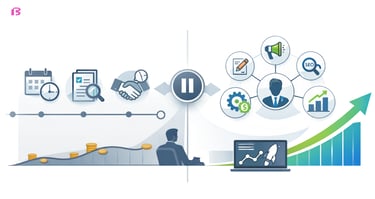 Engagements typically start with 90-day intensive periods to establish foundations, clarifying positioning, implementing technology, and launching demand generation, then scale to ongoing optimization and growth. Resources flex up during product launches or market expansion, then down during consolidation periods.