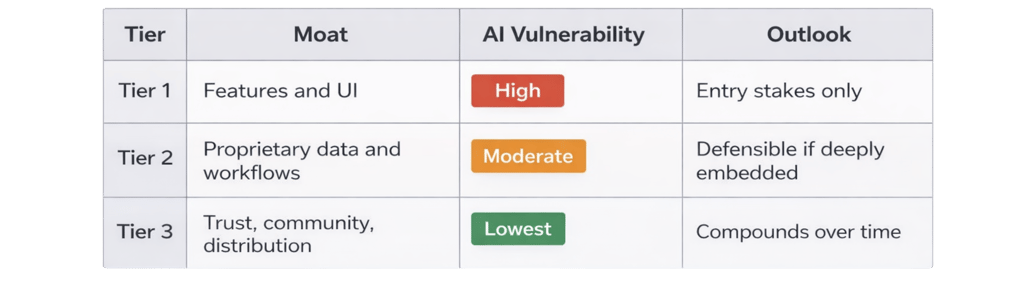 Here is what actually creates a defensible business in 2026 and how to build it.