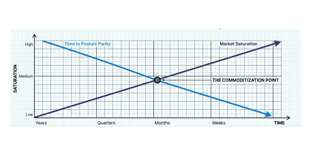 Researchers call this the Commoditization Trap. As software becomes easier to build, markets flood with challengers. Product differentiation becomes impossible to sustain.